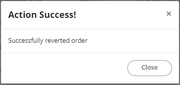 - Confirm the operation and wait for the Action Success! message that indicates the order has been reverted.