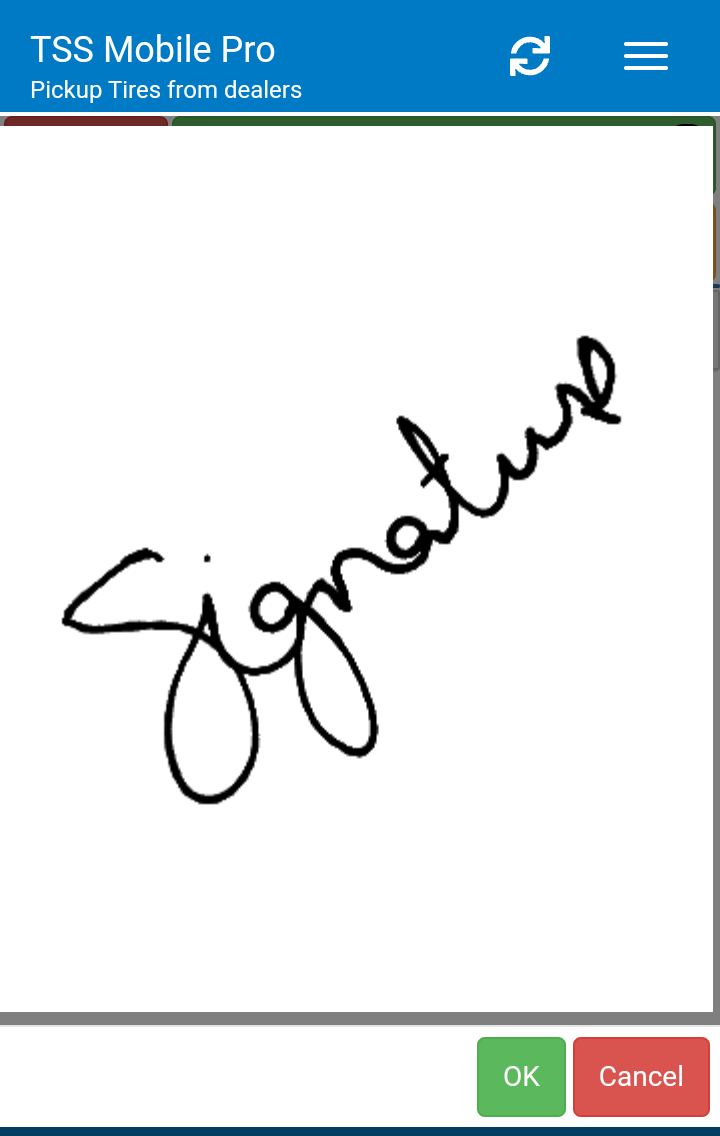 | 4. If Get Signature is selected, capture the dealer representatives signature and tap the OK button. | ![]() |