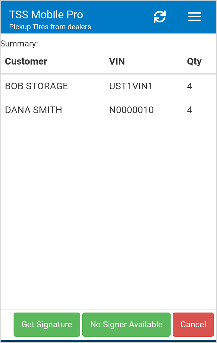 3. Driver has the option to Get Signature or No Signer Available. | ![]() |