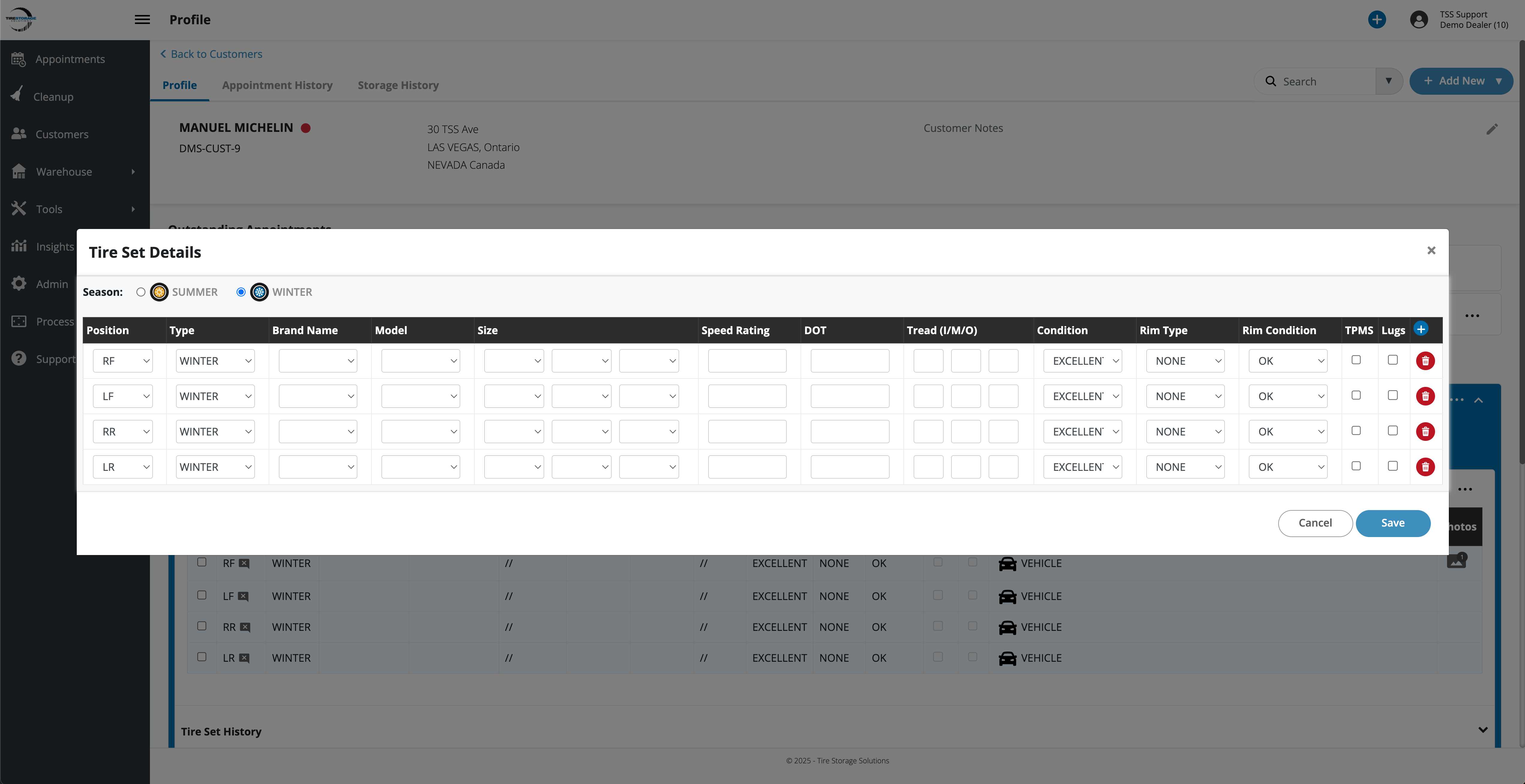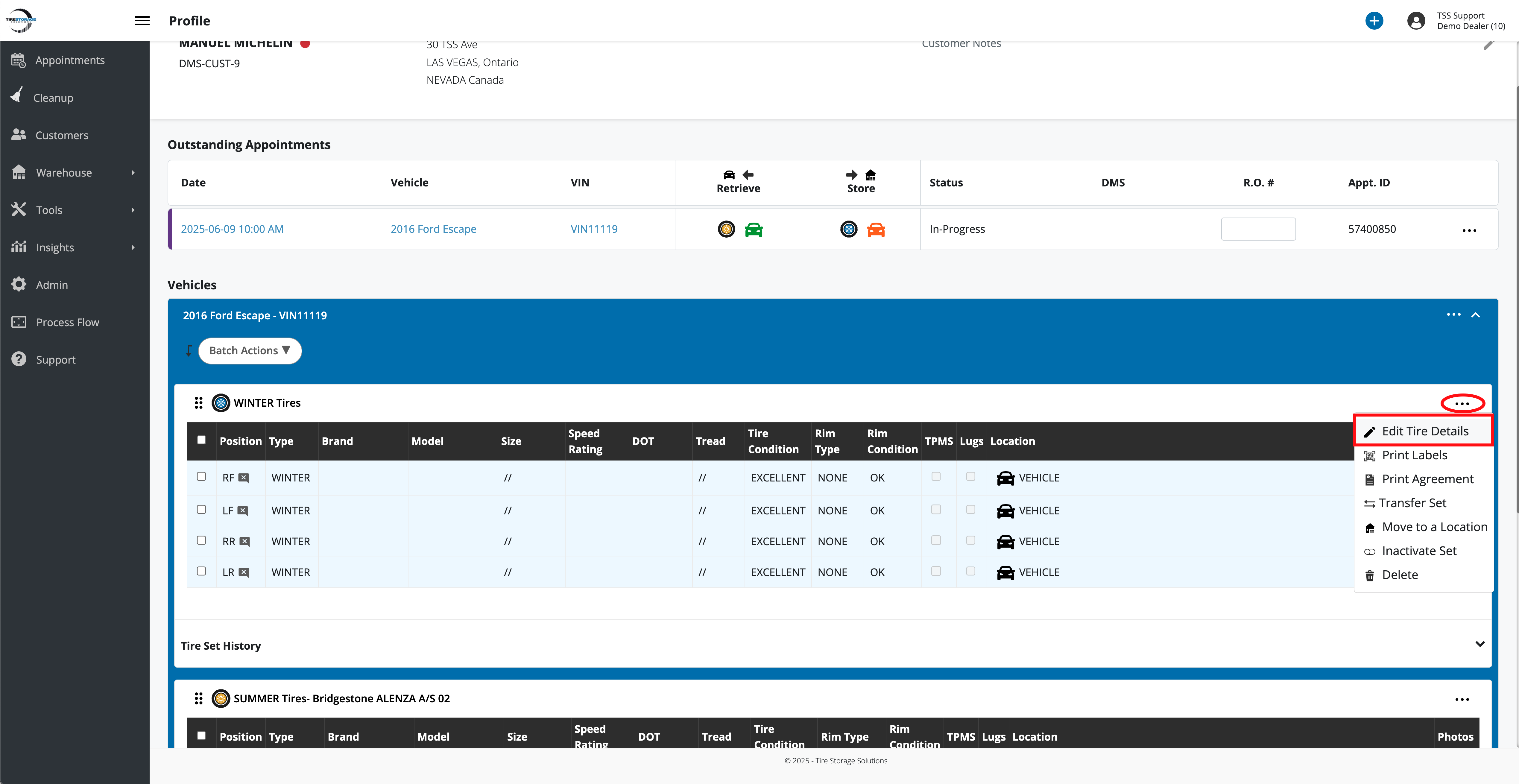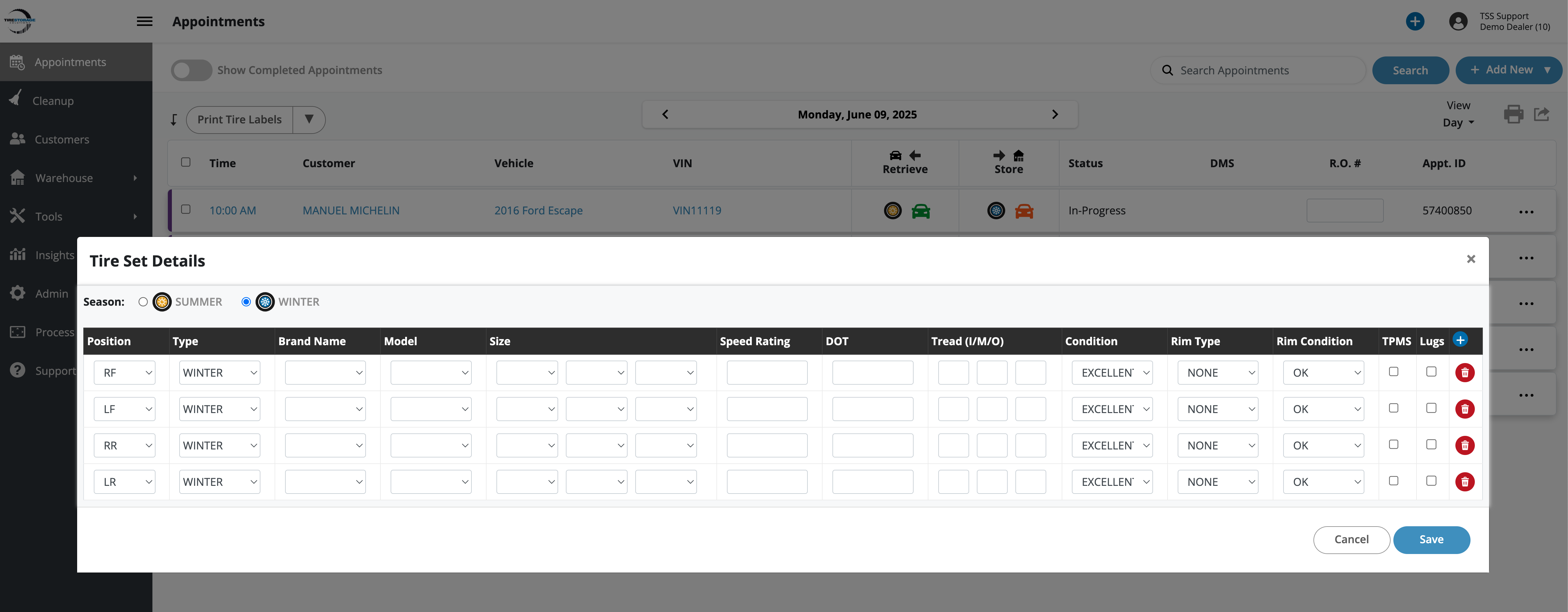 Update Tire Details via Appointment Dashboard