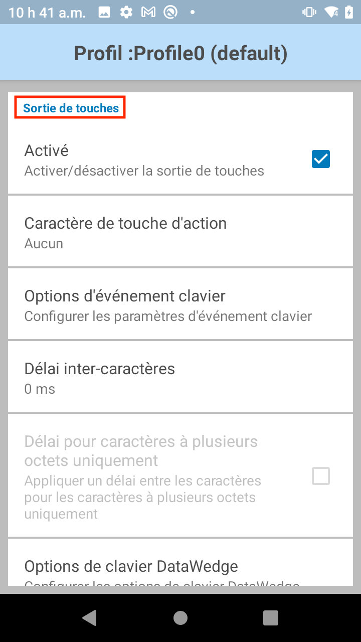 3. Faites défiler jusqu'à la section Sortie de touches: