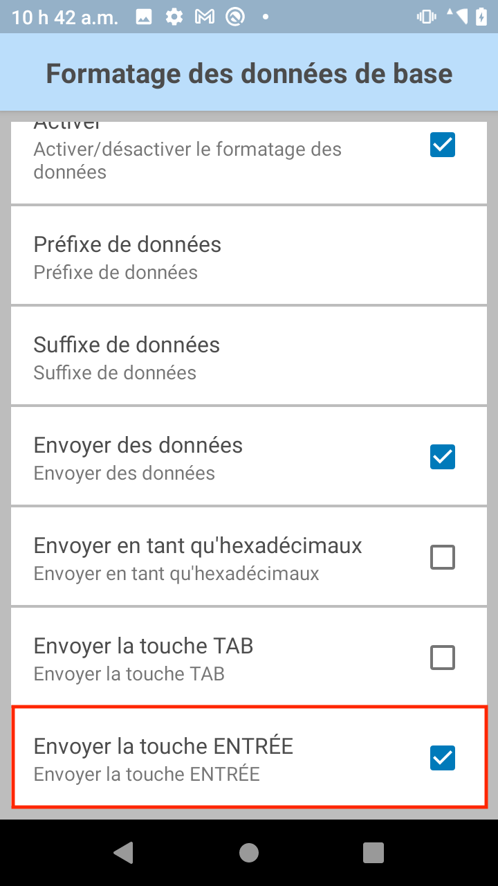4. Dans la section Sortie de touches, faites défiler jusqu'à Formatage des données de base et appuyez dessus: