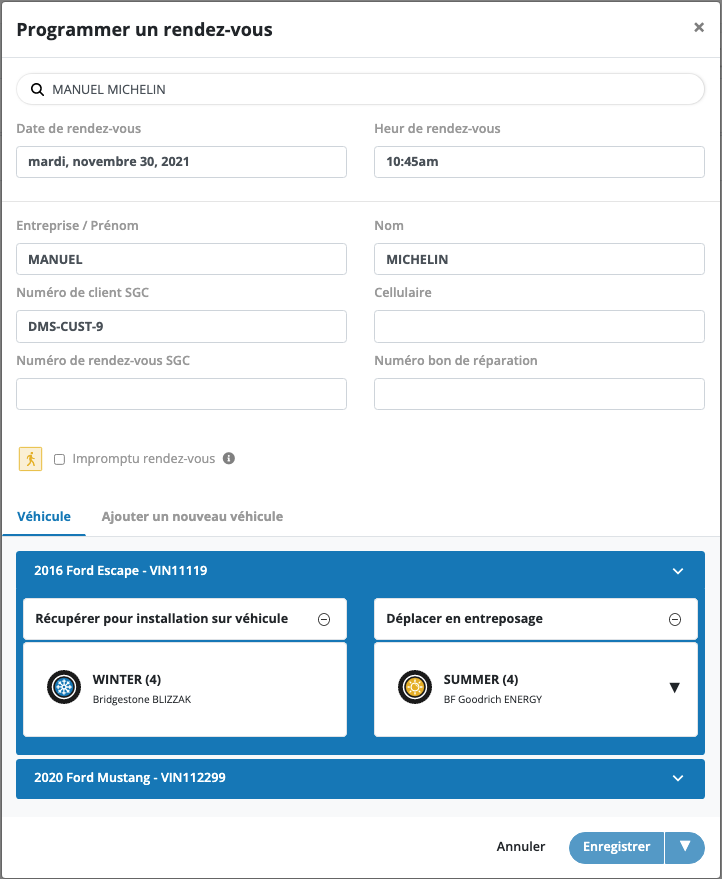 - Sélectionnez le véhicule du client.