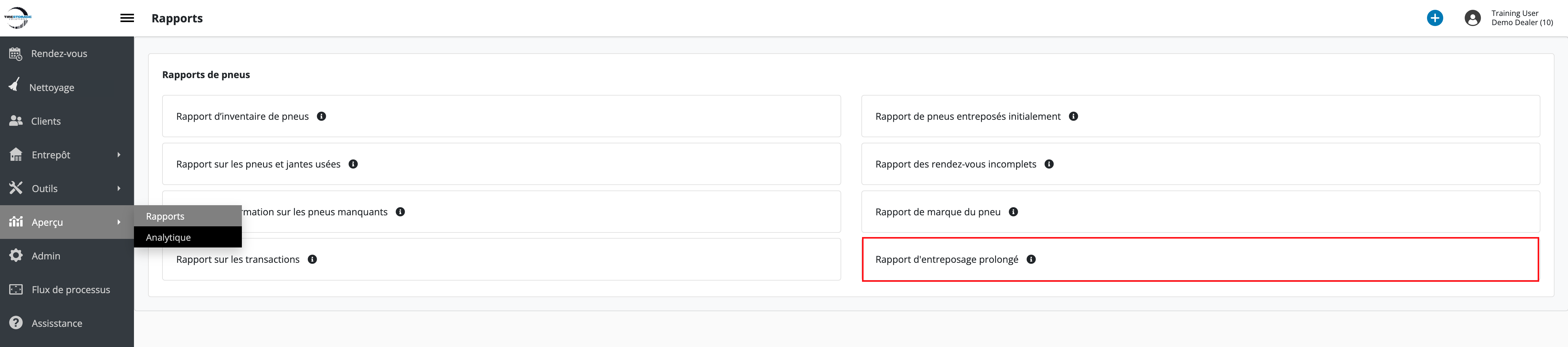 - Accédez à Aperçu → Rapports → Rapport d’entreposage prolongé.